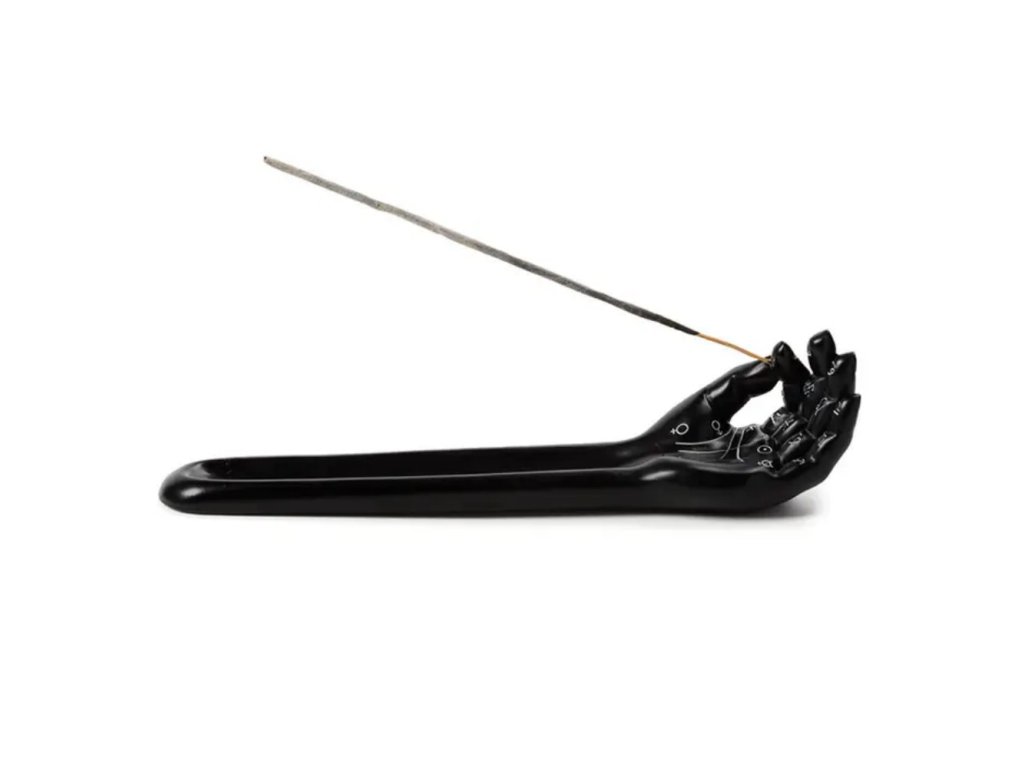 A hosszúkás tálca szépen felfogja a lehulló hamut, míg a kéz biztonságosan tartja a füstölőpálcát. Elegáns kialakításának köszönhetően ideális meditációhoz, vagy egyszerűen csak egy nyugtató, illatos légkör megteremtéséhez.
